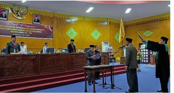 TODAYBERITA. COM – Aceh Tamiang | Pj. Bupati Aceh Tamiang, Drs. Asra, menghadiri pengambilan sumpah dan pelantikan Pengganti Antar Waktu Anggota DPRK Aceh Tamiang di ruang sidang utama DPRK setempat, Selasa (27/2/24) sore.