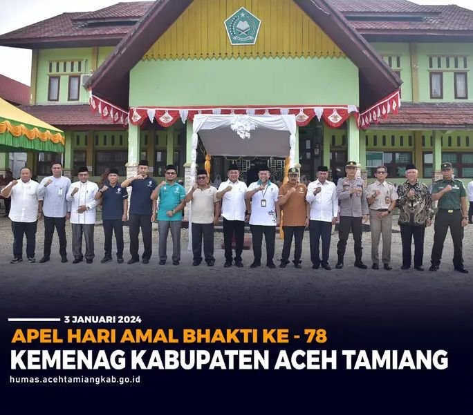 TODAYBERITA.COM | Aceh Tamiang – Kementerian Agama Kabupaten Aceh Tamiang menggelar Apel Peringatan Hari Amal Bhakti (HAB) Ke-78 Kementerian Agama Republik Indonesia dengan tema “Indonesia Hebat Bersama Umat” di halaman Kantor Kemenag, Rabu, (3/1/24).