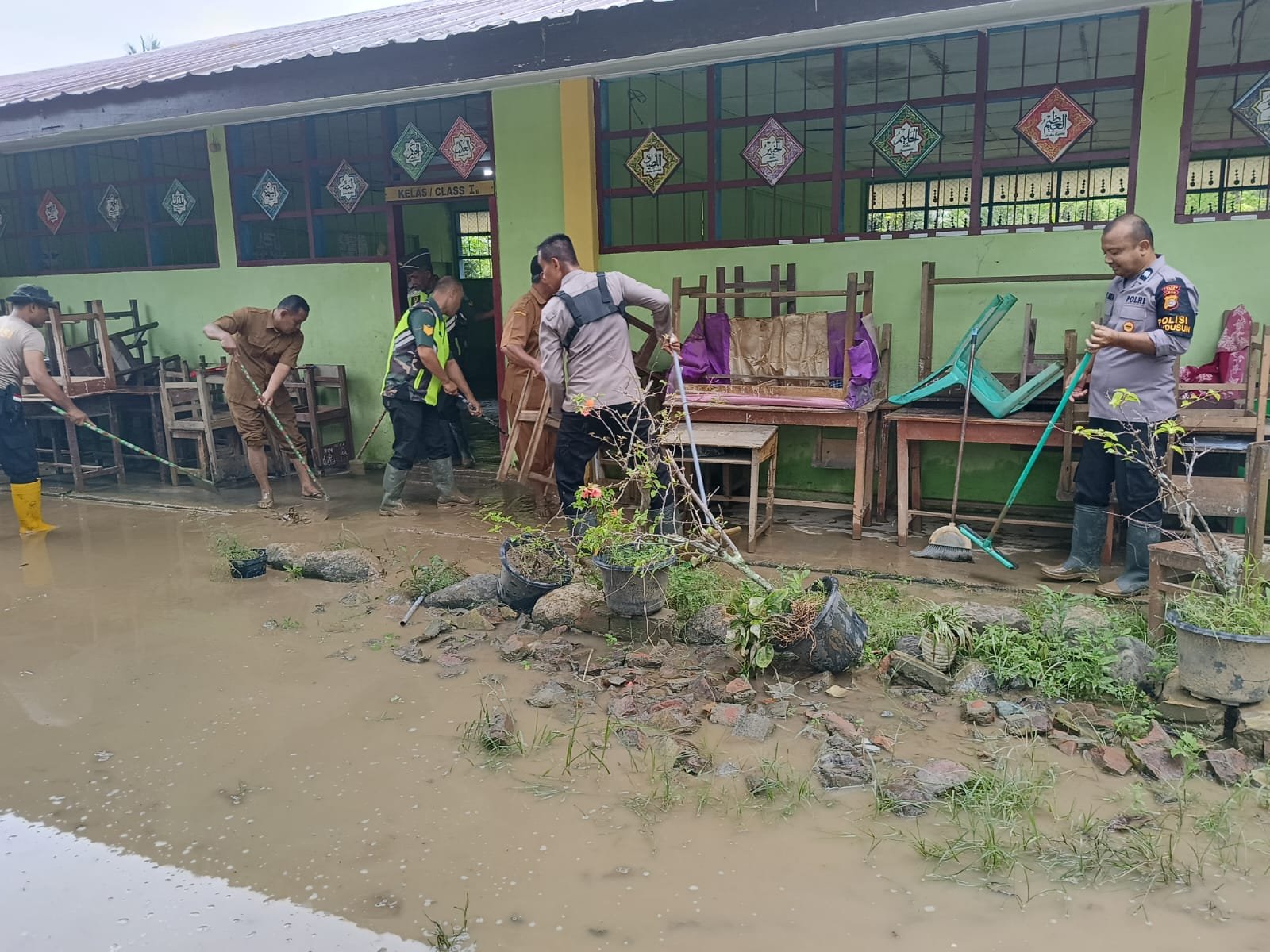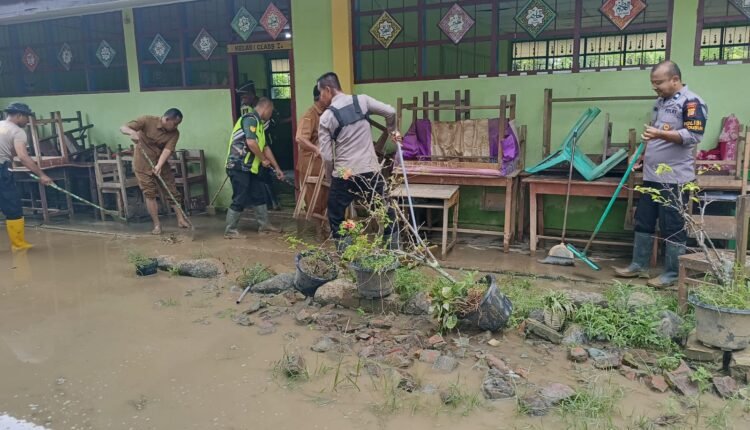 Polisi Bersihkan Sekolah Panca Banjir Di Padang Tiji