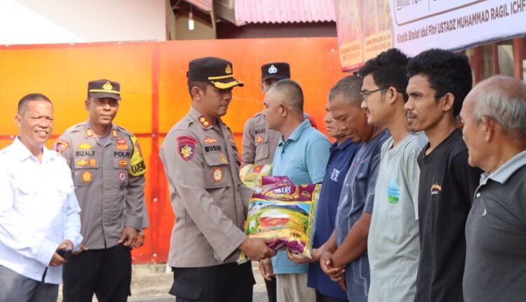 Kapolres Aceh Selatan AKBP Mughi Prasetyo Habrianto selaku penanggung jawab BKM secara simbolis telah menyerahkan Zakat Fitrah berupa beras Premium sebanyak 250 Kg kepada 25 orang Mustahik.