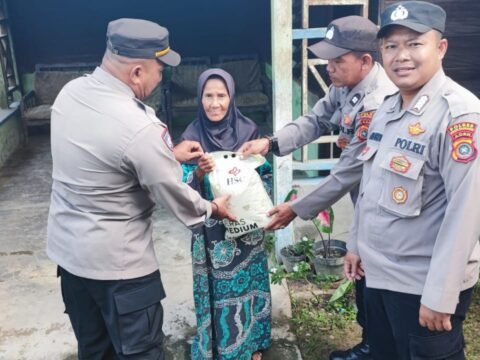 TODAYBERITA.COM| Aceh Tamiang – Polres Aceh Tamiang melalui Satbinmas bagikan Sembako dalam giat Jum’at Berkah kepada masyarakat kurang mampu dipimpin Kasat Binmas IPTU Suripto.