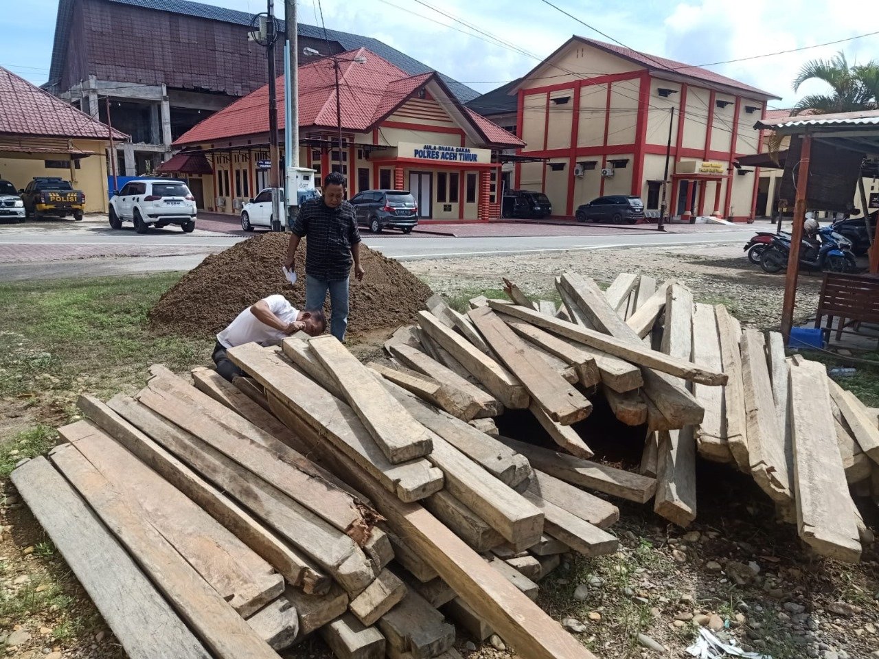 Kepada petugas HA menunjukkan tempat saat ia memuat/mengambil kayu dan setibanya di lokasi terdapat 156 batang kayu olahan. HA mengatakan bahwa kayu tersebut adalah milik AM. Untuk proses hukum lebih lanjut, semua kayu yang berada di lokasi diamankan dan dibawa ke Polres Aceh Timur.