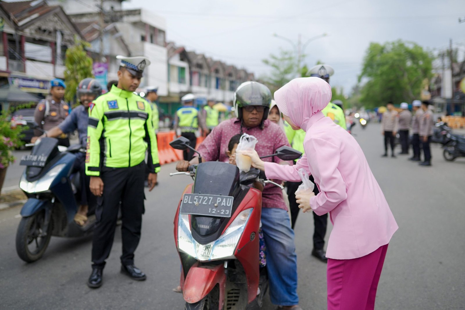 Pembagian takjil gratis ini dipimpin langsung oleh Kapolres Pidie AKBP Imam Asfali, SIK, MH serta turut didampingi Ketua Bhayangkari Cabang Pidie Ny Salma Imam Asfali beserta pejabat utama, personel Polres Pidie dan Pengurus Cabang Bhayangkari Pidie.