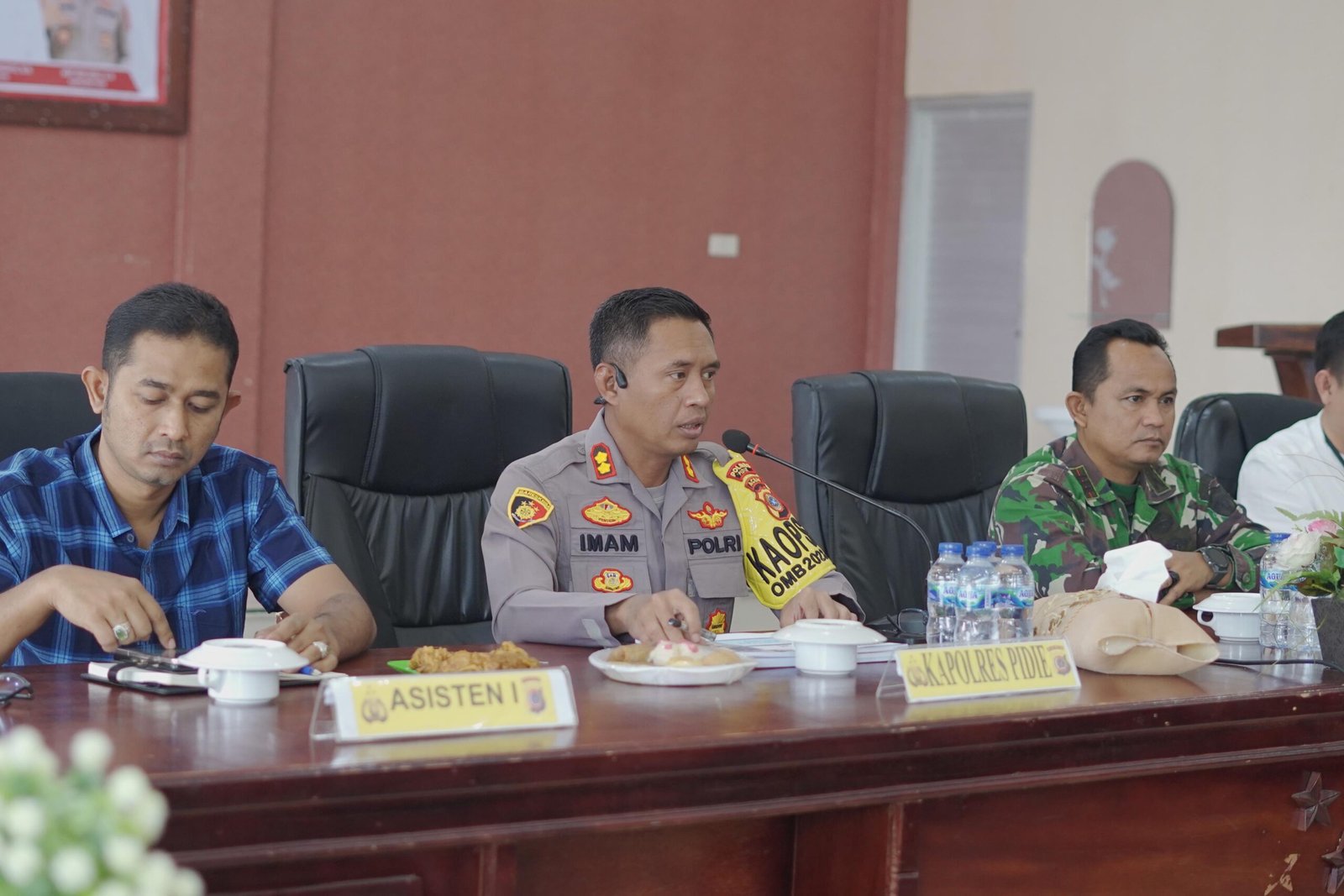 Rapat tersebut dipimpin oleh Kapolres Pidie AKBP Imam Asfali, SIK, MH, juga dihadiri oleh Pj Bupati Pidie diwakili oleh Asisten I , Dandim 0102/Pidie diwakili oleh Pasi Ops Kodim, Kepala.Dinkes Pidie, Kalak BPBD Pidie, Kadis LH Kabupaten Pidie, SAR Pidie dan Pejabat Utama Polres Pidie.