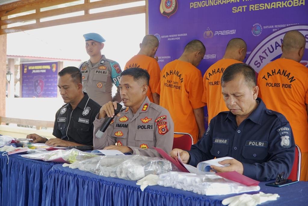 Selain itu, pada konferensi pers tersebut, Kapolres Pidie membeberkan pengungkapan beberapa kasus TP narkotika jenis sabu dan ganja, serta menghadirkan para tersangka beserta BB.