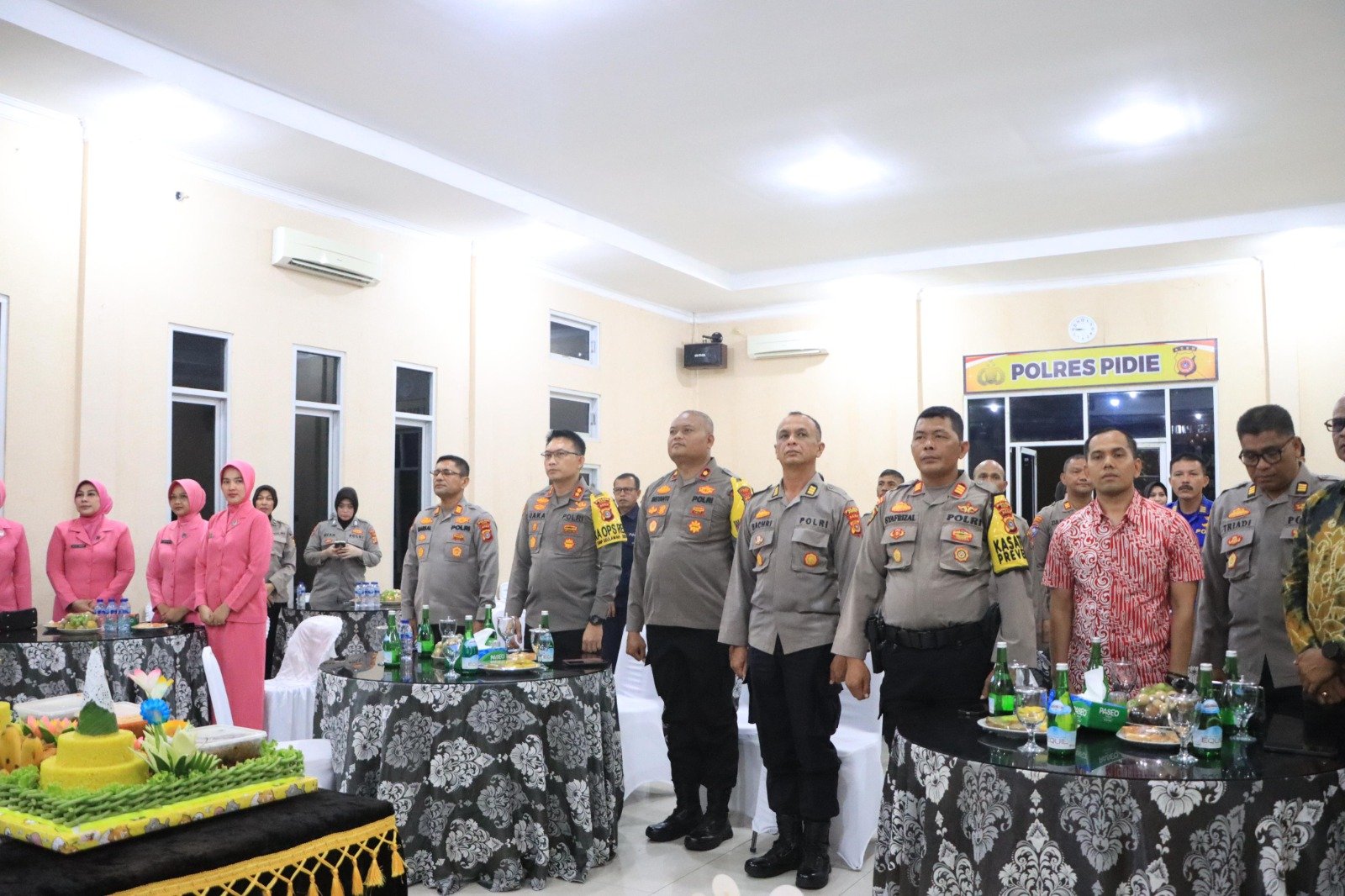 Acara syukuran dipimpin oleh Kapolres Pidie AKBP Jaka Mulyana, SIK, MIK dan didampingi Ketua Bhayangkari Cabang Pidie Ny. Ruri Jaka, pejabat utama Polres Pidie, pengurus Bhayangkari Cabang Pidie dan Polwan Polres Pidie.