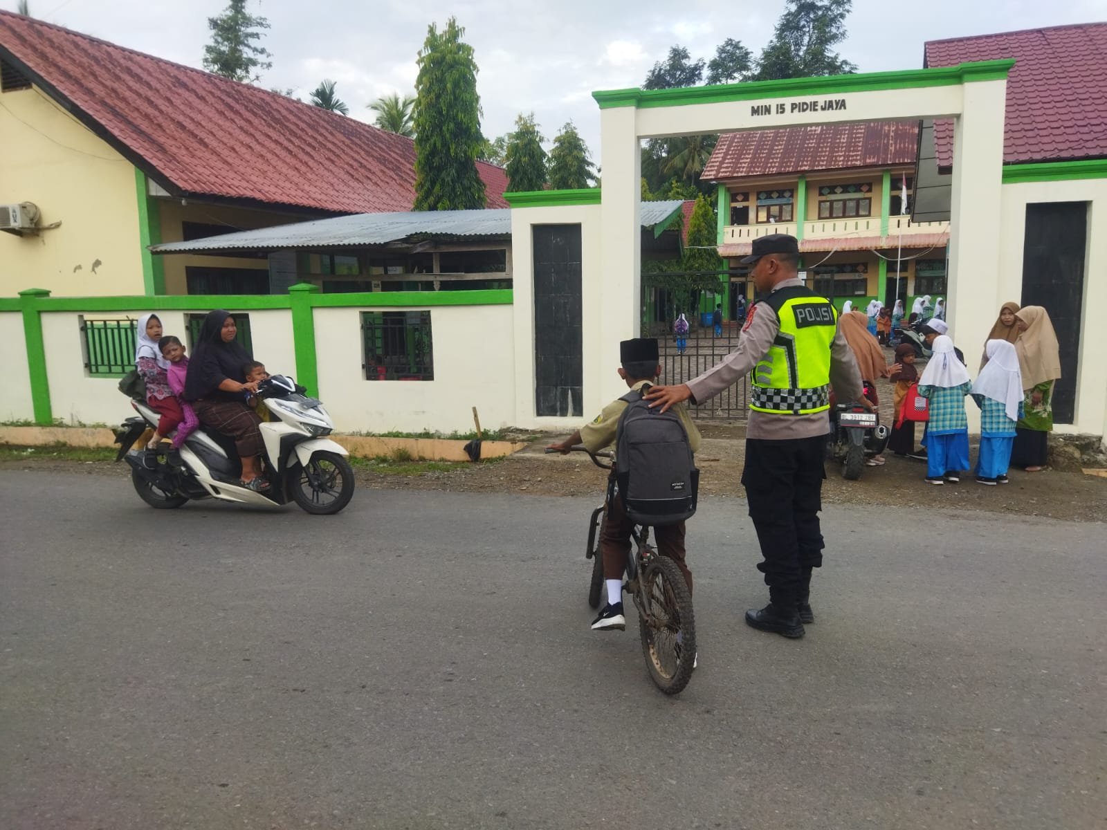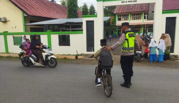 Di bawah kepemimpinan Kapolres Pidie Jaya AKBP Dodon Priyambodo, S.H, S.I.K, M.Si, petugas Polri secara aktif menyeberangkan anak-anak sekolah dan pengguna jalan lainnya, menjamin keselamatan mereka saat memasuki lingkungan sekolah.