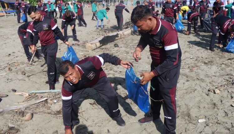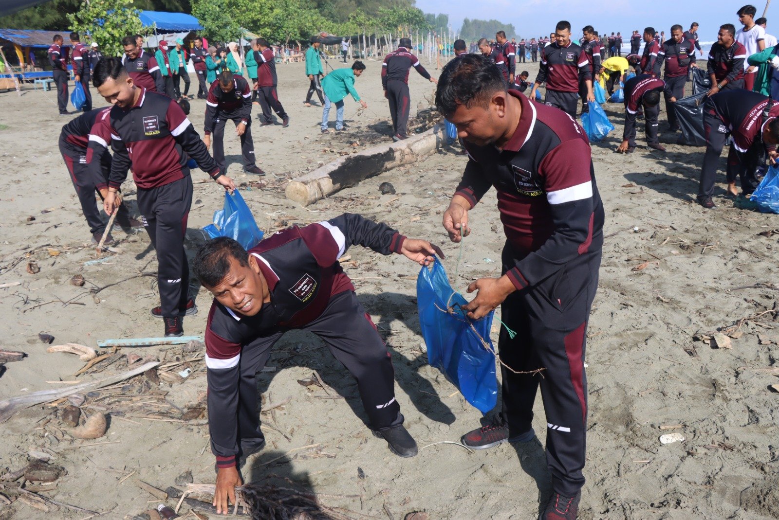 *Polres Pidie Jaya melaksanakan kegiatan Peduli Lingkungan membersihkan Pantai*