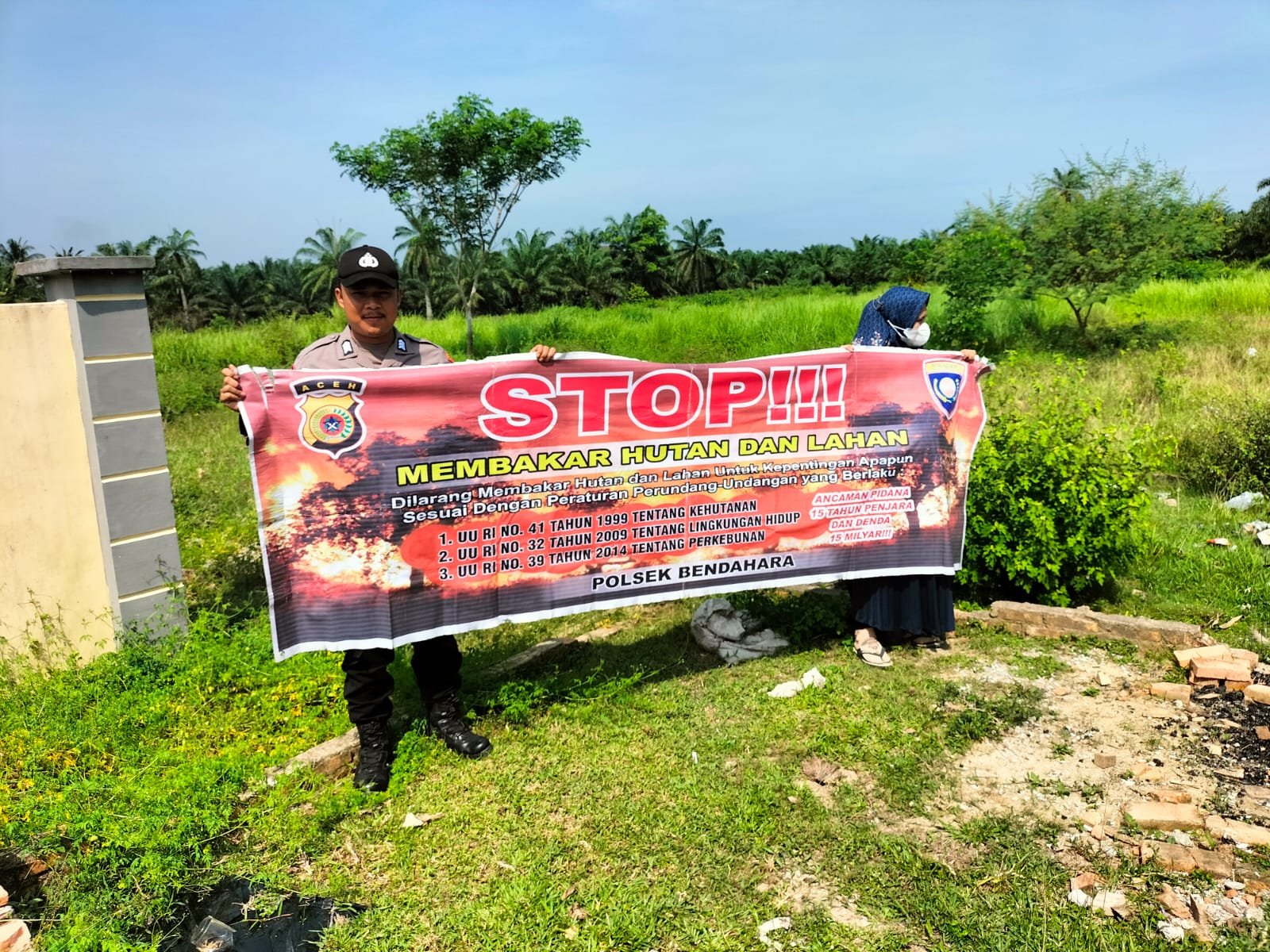 “Ancaman pidana dengan sengaja membakar hutan dan lahan di pidana Penjara 10 tahun dan denda 10 Milyar Rupiah (UU No 41 Tahun 1999 ttg Kehutanan, Yakni Pasal 48 Ayat 1),” jelas nya.