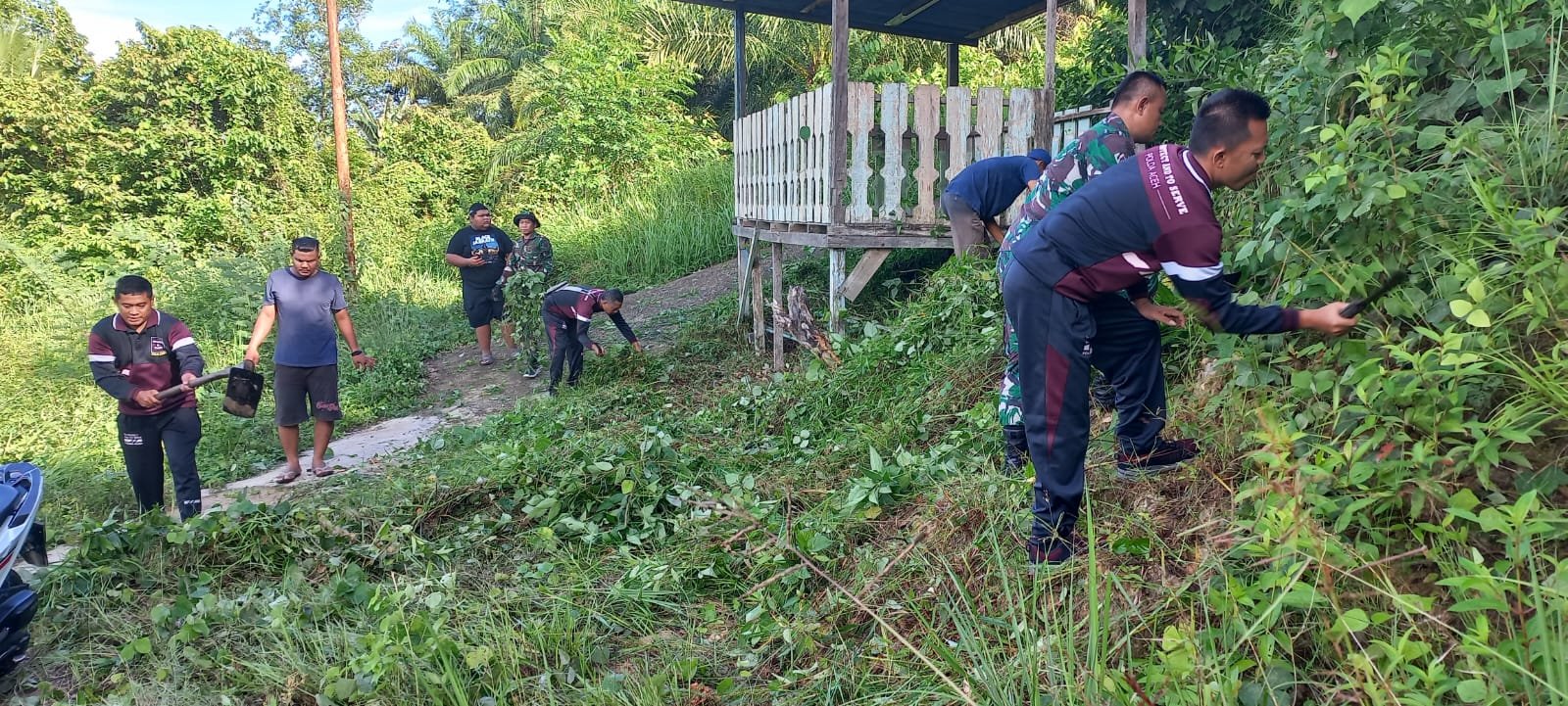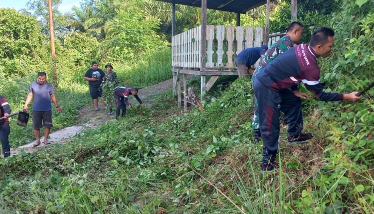 TODAYBERITA.COM-|ACEH TAMIANG – Sinergi TNI dan Polri, Polsek Kualasimpang dipimpin Kapolsek, Iptu Amril Bakhri, SH dan Koramil 01/Ksp dipimpin Danramil, Kapten Inf Abidin bersama masyarakat Desa Sriwijaya laksanakan gotong royong bersama.