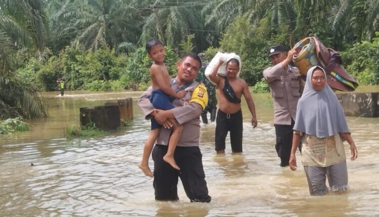 Polsek Trumon Beserta Tim BPBD Bantu Evakuasi Masyarakat Terdampak Banjir