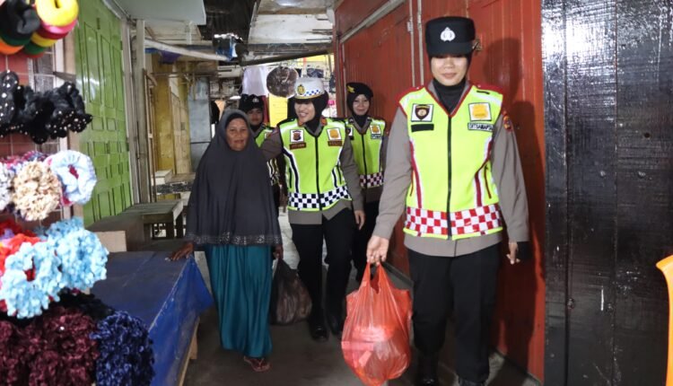 Selain melakukan pengaturan lalu lintas, Polwan Polres Aceh Tamiang yang dipimpin oleh Kasat Lantas Polres Aceh Tamiang AKP Ritian Handayani, S.I.K juga membagikan bantuan sosial berupa Sembako kepada masyarakat yang membutuhkan.
