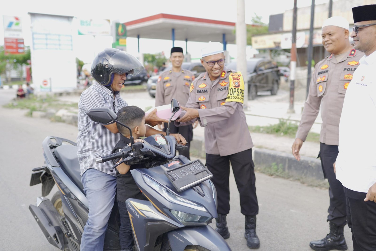 Rabu (3/4/2024) sore, Personel Satuan Intelkam Polres Pidie membagikan takjil di Jalan Jalur dua depan SPBU Pulo Pisang Sigli, sedikitnya 300 bungkus takjil mereka bagikan kepada para pengendara sepeda motor yang melintas di jalan itu.