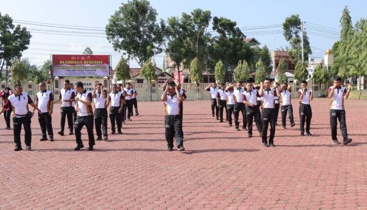 TODAYBERITA.COM| Aceh Tamiang- Dalam rangka menyambut HUT Polwan Republik Indonesia ke-75, Personel Polres Aceh Tamiang bersama Bhayangkari Cabang Aceh Tamiang melaksanakan senam bersama, di lapangan apel Parama Satwika Mapolres Aceh Tamiang, Jumat (11/8/2023) pagi.