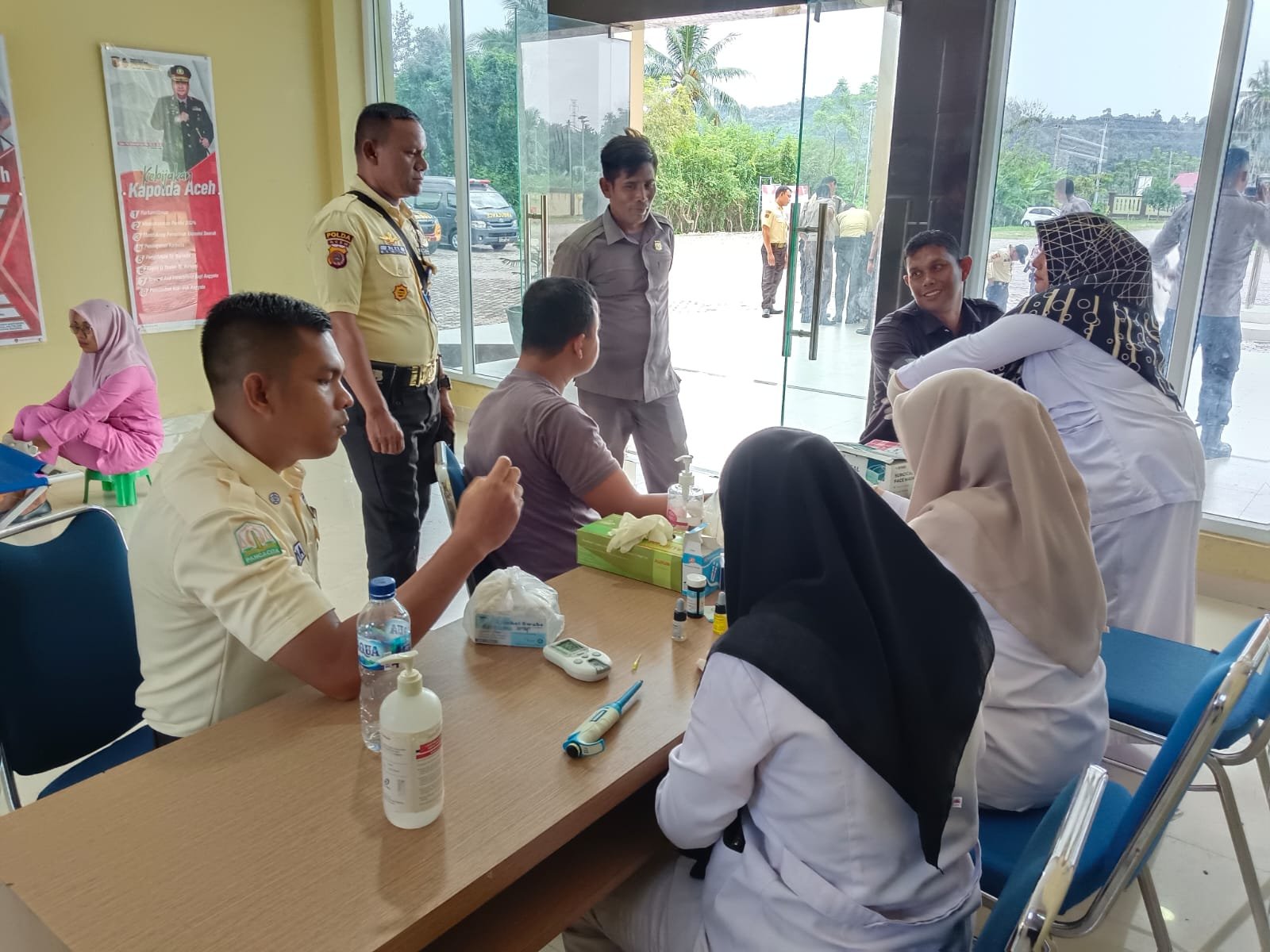 Seluruh personel Sat Binmas dan satpam, bersama Kasat Binmas Polres Pidie Jaya, secara aktif terlibat dalam kegiatan Donor Darah sebagai bentuk kepedulian Polisi dan koordinator satpam di wilayah Polres Pidie Jaya.