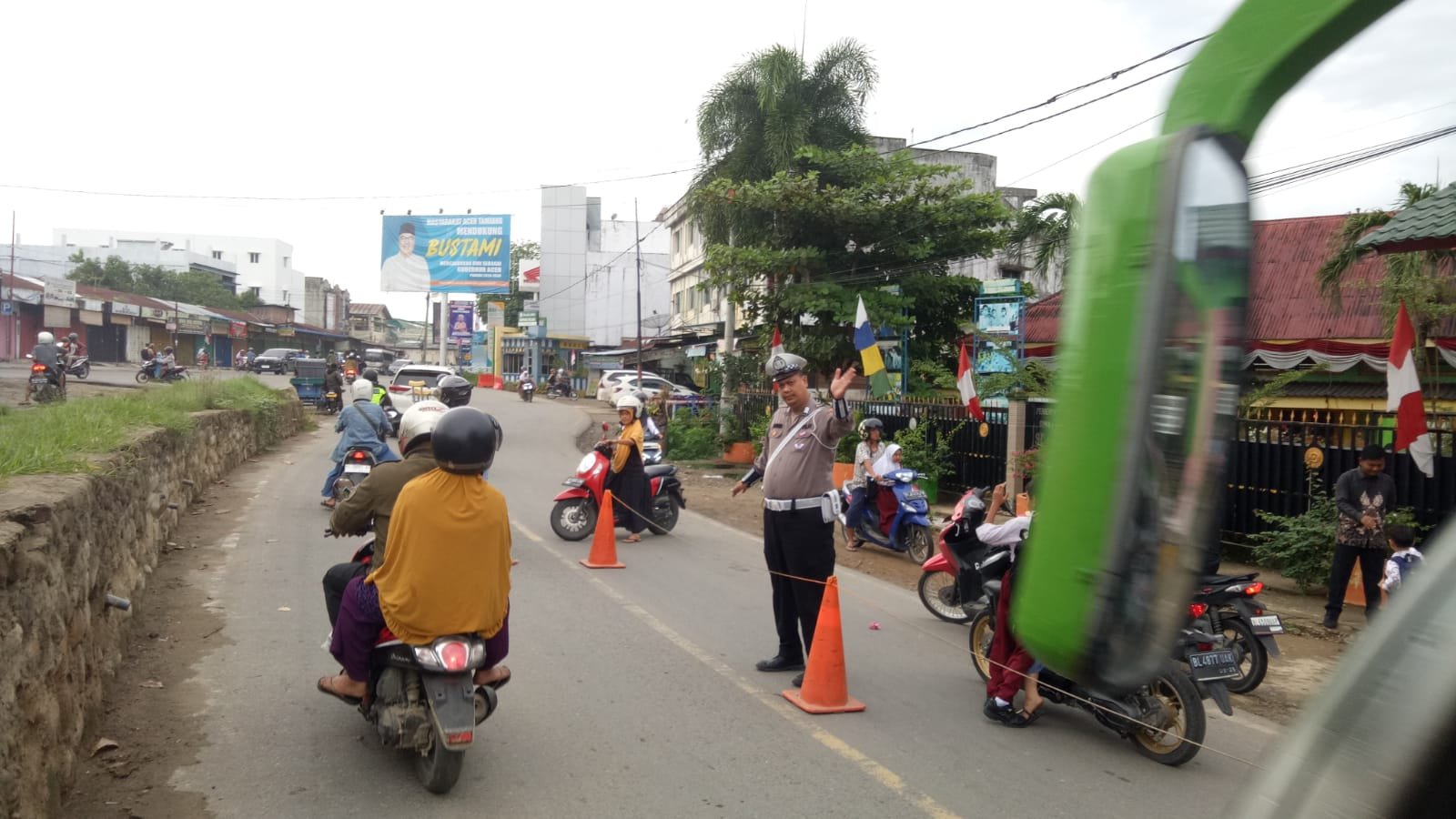 Sat Lantas Polres Aceh Tamiang Lakukan Pengaturan Lalu Lintas Pagi Hari, Pastikan Kamseltibcar Lantas