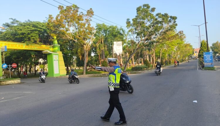Sat Lantas Polres Aceh Tamiang Rutin Melaksanakan Strong Point Pagi Cegah Kemacetan dan Kecelakaan