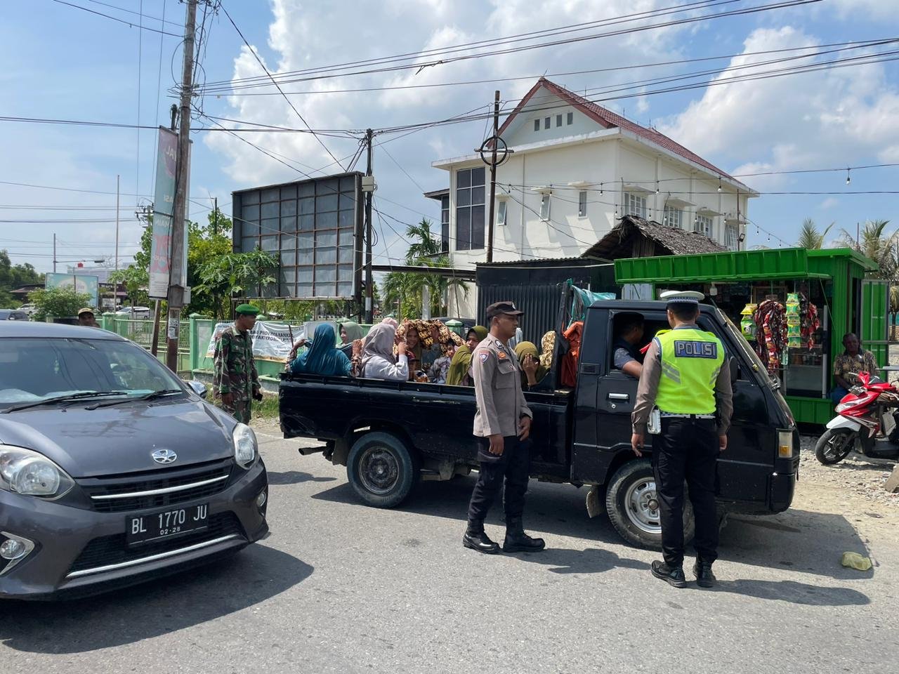 ”kami berikan teguran terhadap sopir pik up / Truck karena menyalahi aturan. Kami juga periksa kelengkapan kendaraan dan SIM sopir. Tujuan teguran ini, agar tak ada lagi truk bak terbuka mengangkut orang,” kata AKP Irwansyah, S.Sos