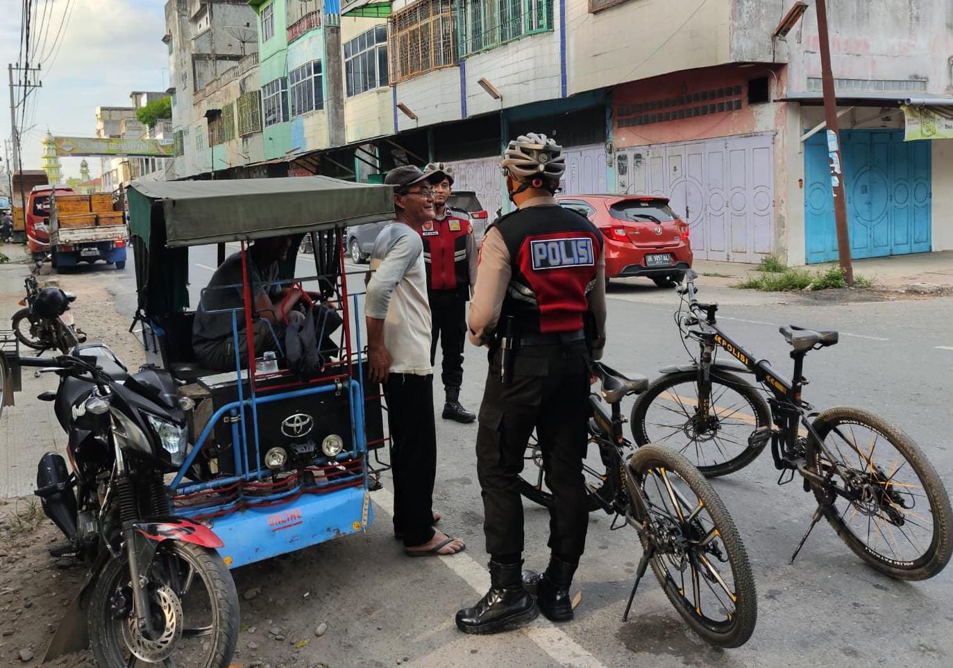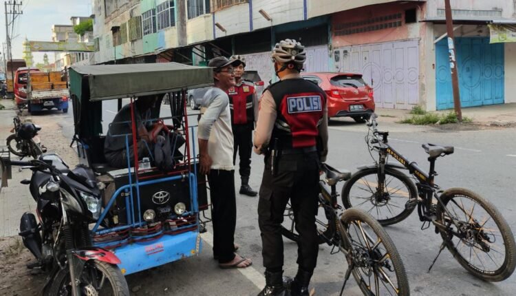 Sat Samapta Polres Aceh Tamiang Patroli Dialogis Dengan Bersepeda di Kota Kuala Simpang