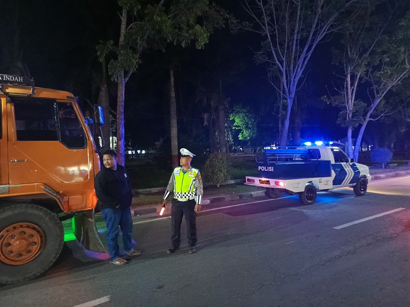 Satlantas Polres Aceh Tamiang Berikan Teguran dan Himbauan Kepada Para Supir Truck Yang Parkir di Badan Jalan