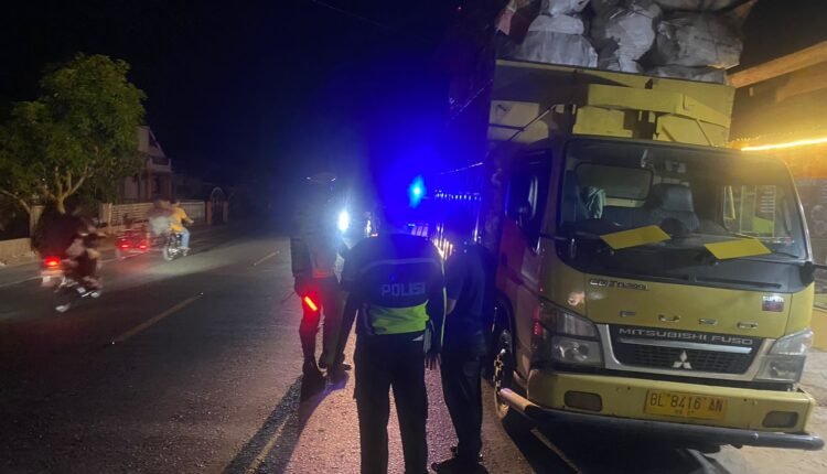Satlantas Polres Aceh Tamiang Berikan Teguran Kepada Para Supir Truck Yang Parkir Sembarangan Guna Cegah Kecelakaan