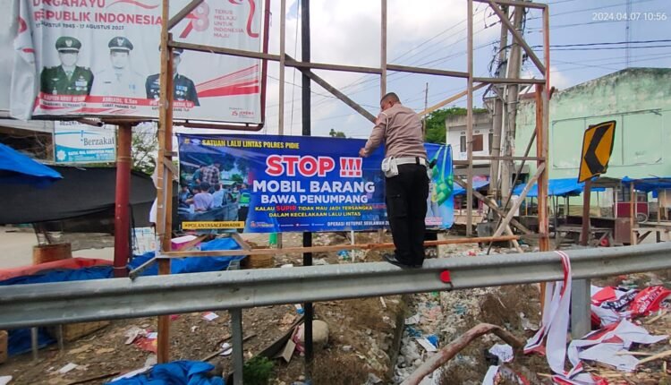 TODAYBERITA.COM | Sigli – Satuan Lalu lintas Polres Pidie mencari cara baru untuk ciptakan situasi yang kondusif saat mudik lebaran Idul Fitri 1445 H dengan memasang spanduk dengan tulisan yang unik.