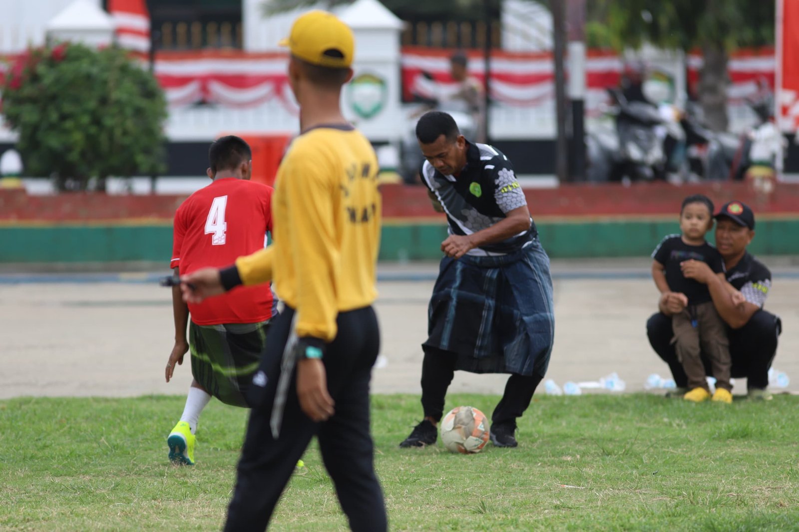 Semarakkan HUT RI Ke 79, Dandim Aceh Utara Ikut main Futsal Pake Sarung.