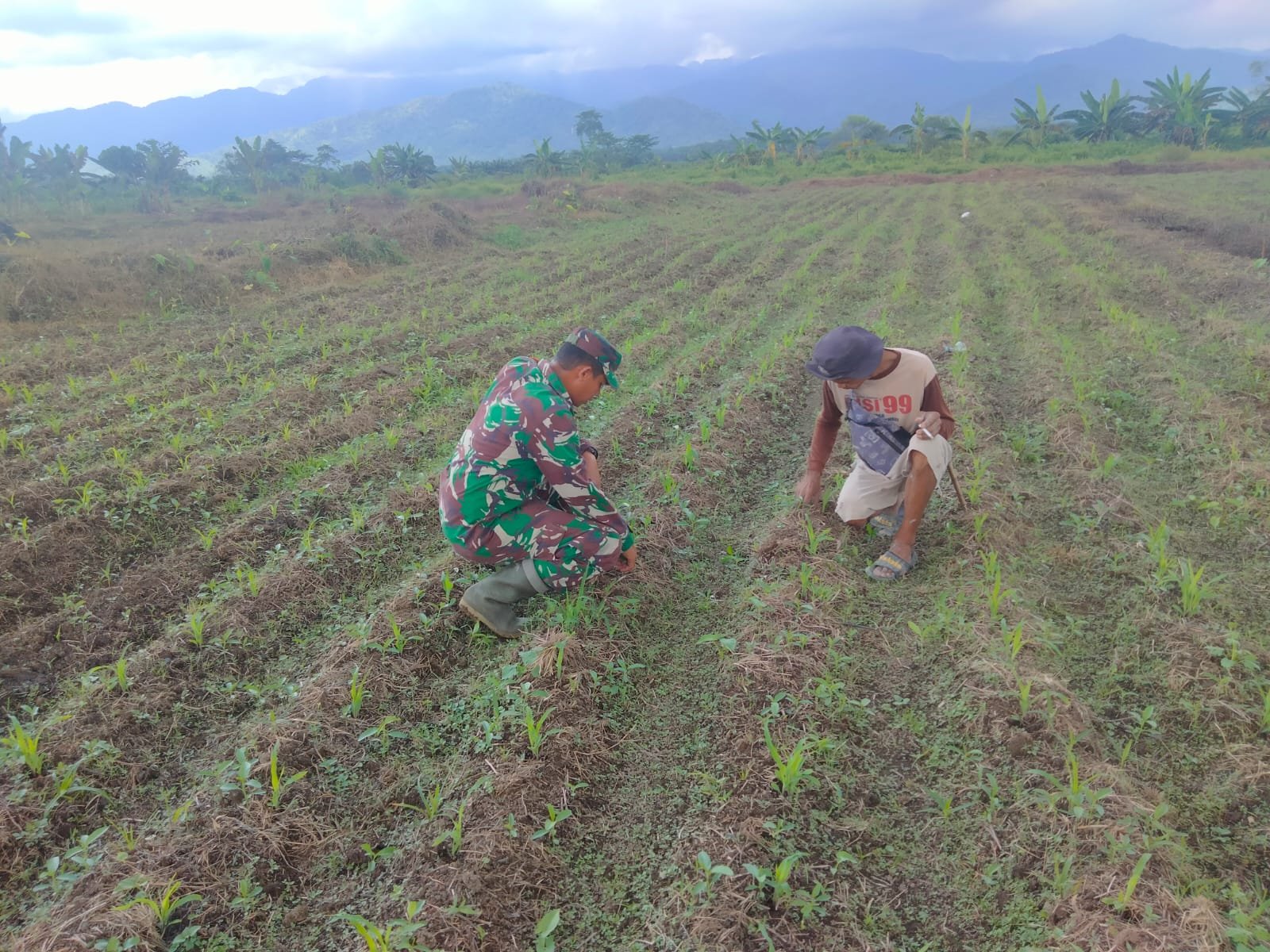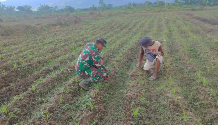 Sertu Sugeng Pujianto Dampingi Petani Cek Pertumbuhan Tanaman Jagung