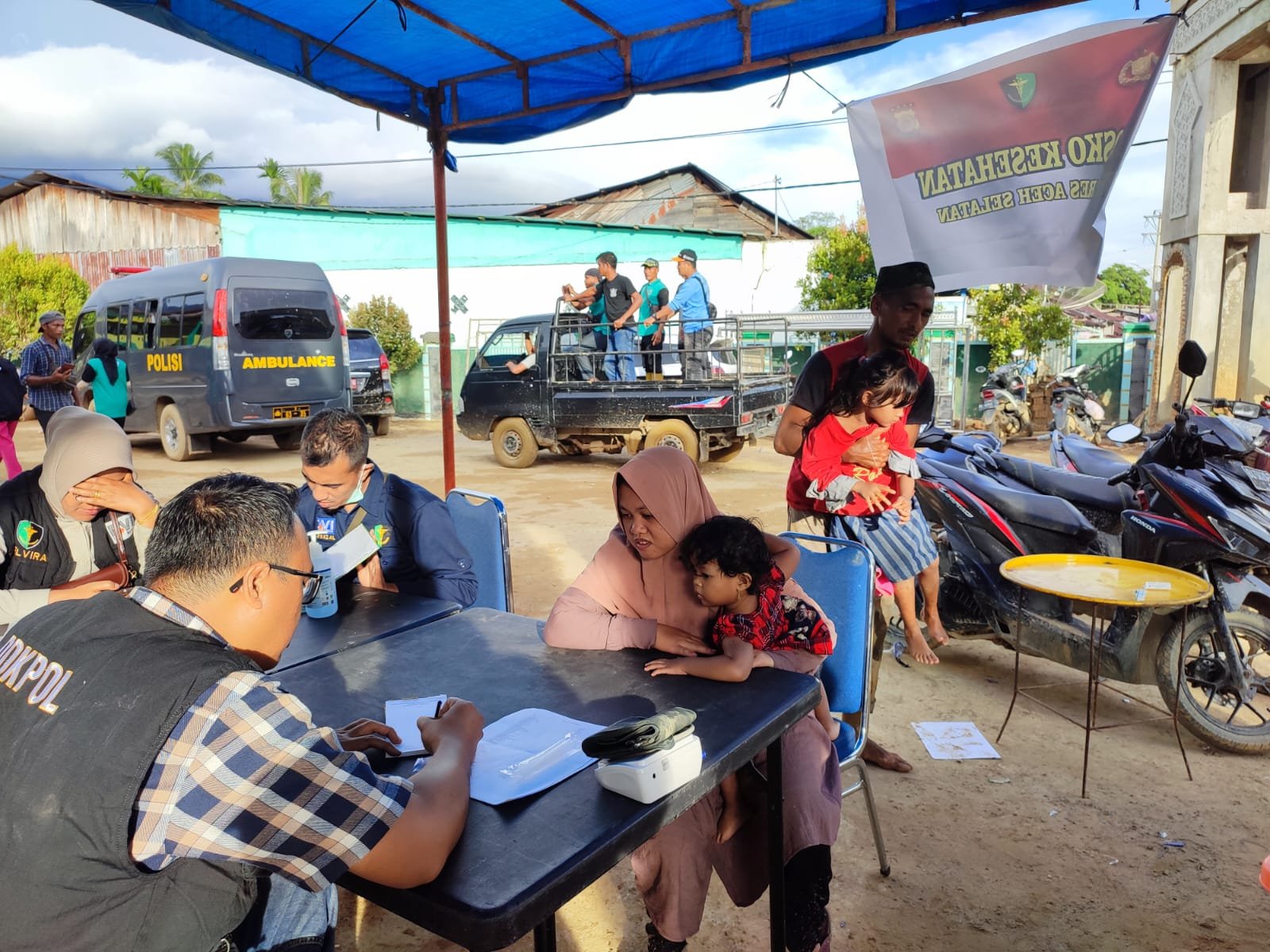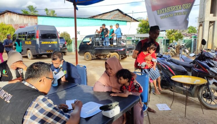 TODAYBERITA.COM| Aceh Selatan – Seksi Kedokteran dan kesehatan (Sidokkes) Polres Aceh Selatan Polda Aceh berikan pelayanan kesehatan secara grátis kepada korban banjir bandang di Desa Ladangrimba Kecamatan Trumon Tengah Aceh Selatan