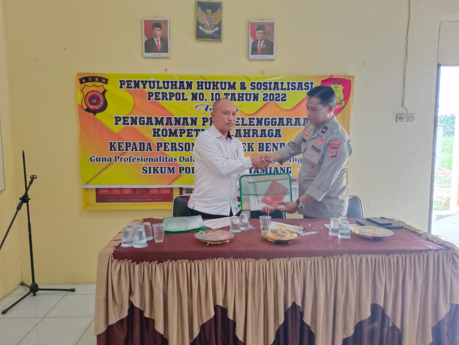 Sebagai pemateri dalam kegiatan tersebut yaitu BatiSiekum Polres Aceh Tamiang AIPDA TAUFIĶ HIDAYAT,S.H.,S.Psi.,M.H tentang Sosialisasi Peraturan kepolisian no. 10 tahun 2022 tentang Pengamanan Penyelenggaraan Kompetisi Olahraga