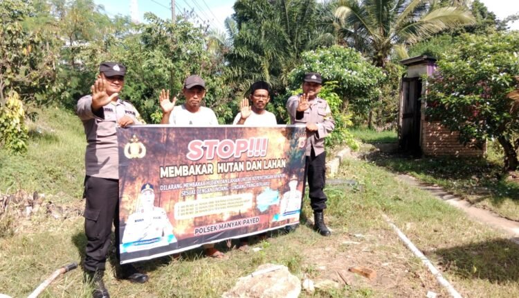TODAYBERITA.COM |Langsa – Bhabinkamtibmas Polsek Manyak Payed Payed melaksanakan patroli ke Desa-desa sekaligus memberikan sosialisasi dan himbauan kepada warga pemilik lahan pertanian untuk cegah Karhutla (kebakaran hutan dan lahan), Senin (31/07/2023)
