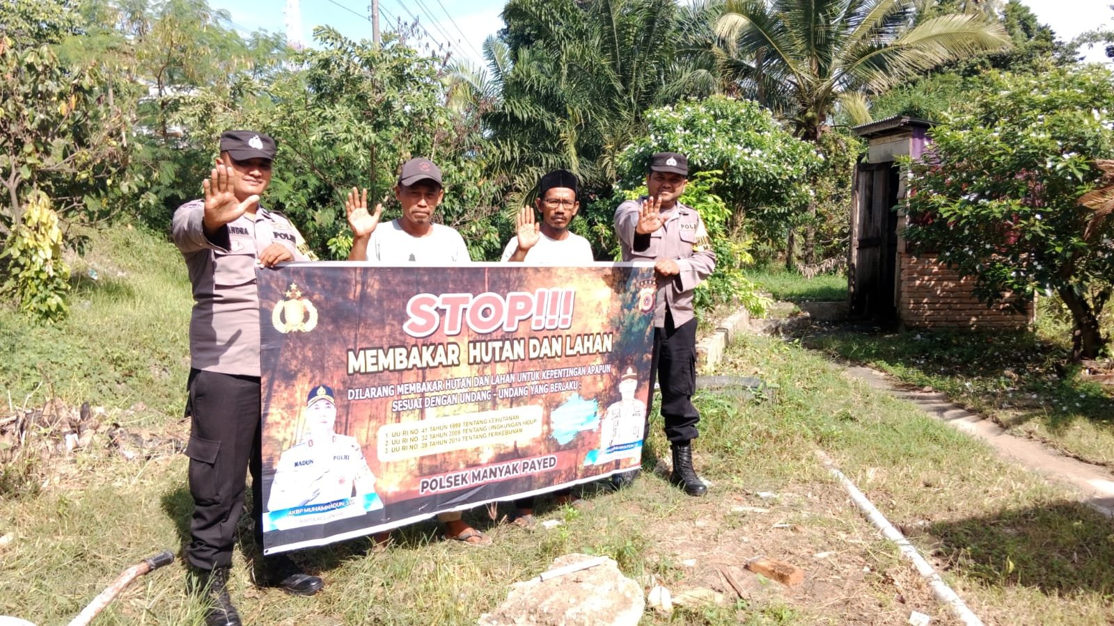 Bhabinkamtibmas juga menyampaikan kepada pemilik lahan agar tidak membakar hutan dan lahan, karena dengan melakukan pembakaran hutan/lahan dengan sengaja yang dapat merugikan orang banyak akibat dari pemebakaran menimbulkan asap menggangu Kesehatan dan Ekosistem.