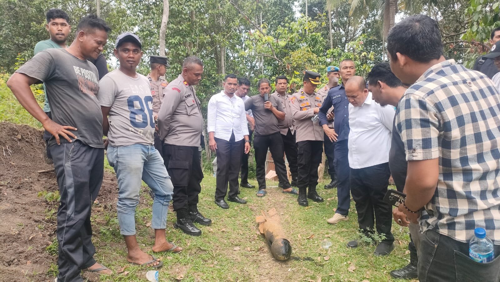 Bom berkekuatan tersebut ditemukan oleh seorang warga di kebun milik Saudara Syukri, pada hari Sabtu (23/09) di Gampong Mulieng, Kecamatan Mereudu saat melakukan pengalian penanaman sawit.