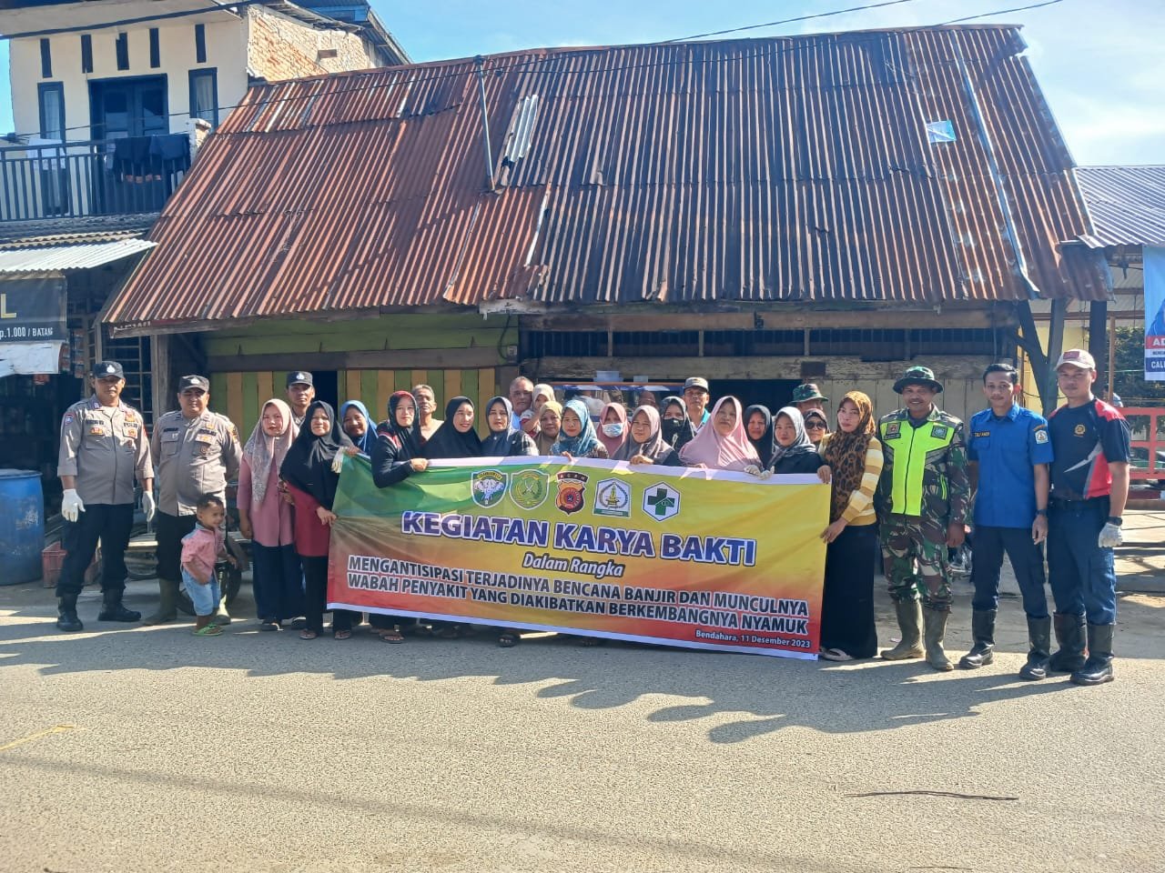 TODAYBERITA.COM| Aceh Tamiang – Personel Polsek Bendahara bersama Personil Koramil 04/Bdh, Dinkes dan Damkar serta Masyarakat Kecamatan Bendahara Kabupaten Aceh Tamiang melaksanakan gotong royong bersama. Senin (11/12/ 2023)