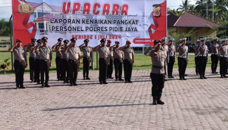 TODAYBERITA.COM | Pidie Jaya– Dalam sebuah upacara yang penuh khidmat di halaman Mapolres Pidie Jaya, 18 personel Polres Pidie Jaya menerima kenaikan pangkat setingkat lebih tinggi. Minggu, 30 Juni 2024. Pukul 16.00 WIB.