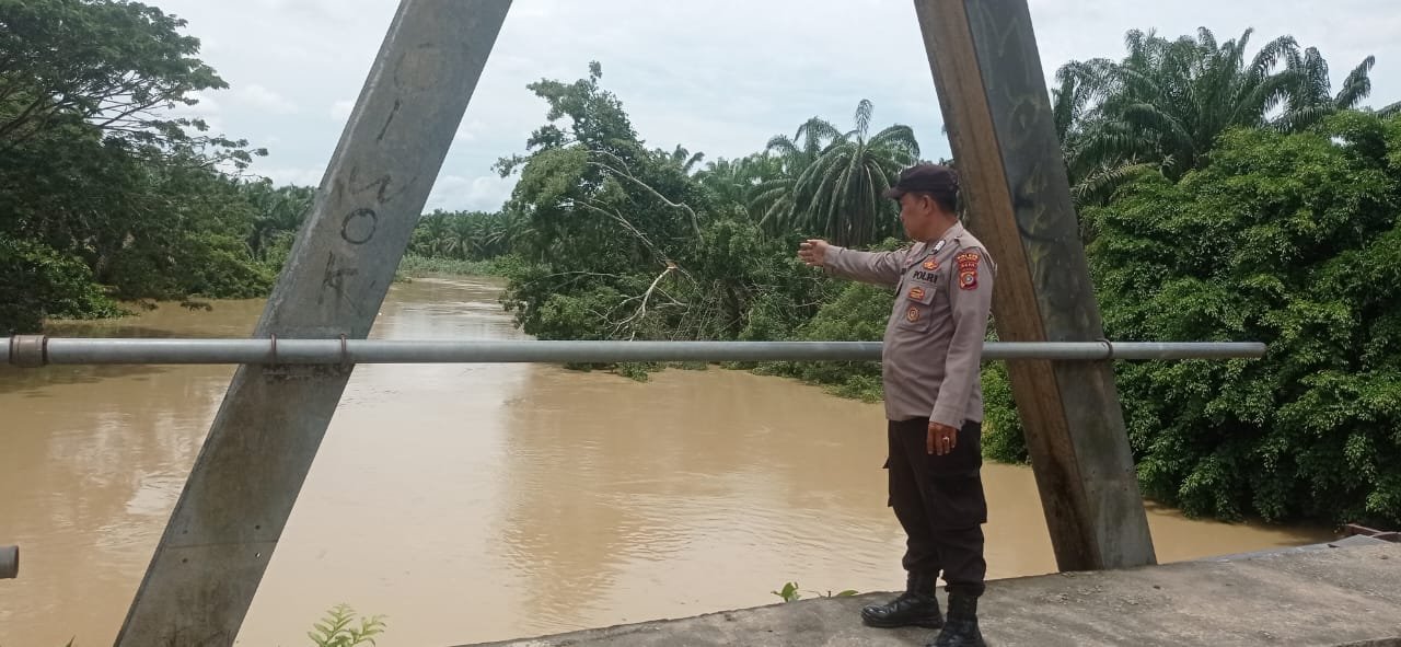 Update Situasi Debit Air Banjir, Personel Polsek Simpang Kiri Patroli di Daerah Rawan Banjir