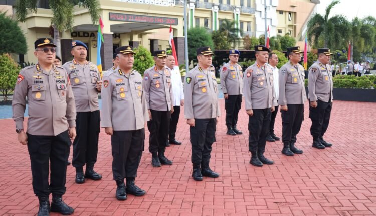 Apel pagi di lapangan Mapolda Aceh dihadiri para PJU, Pamen, Pama, Bintara, Tamtama dan ASN Polda Aceh.**(R)