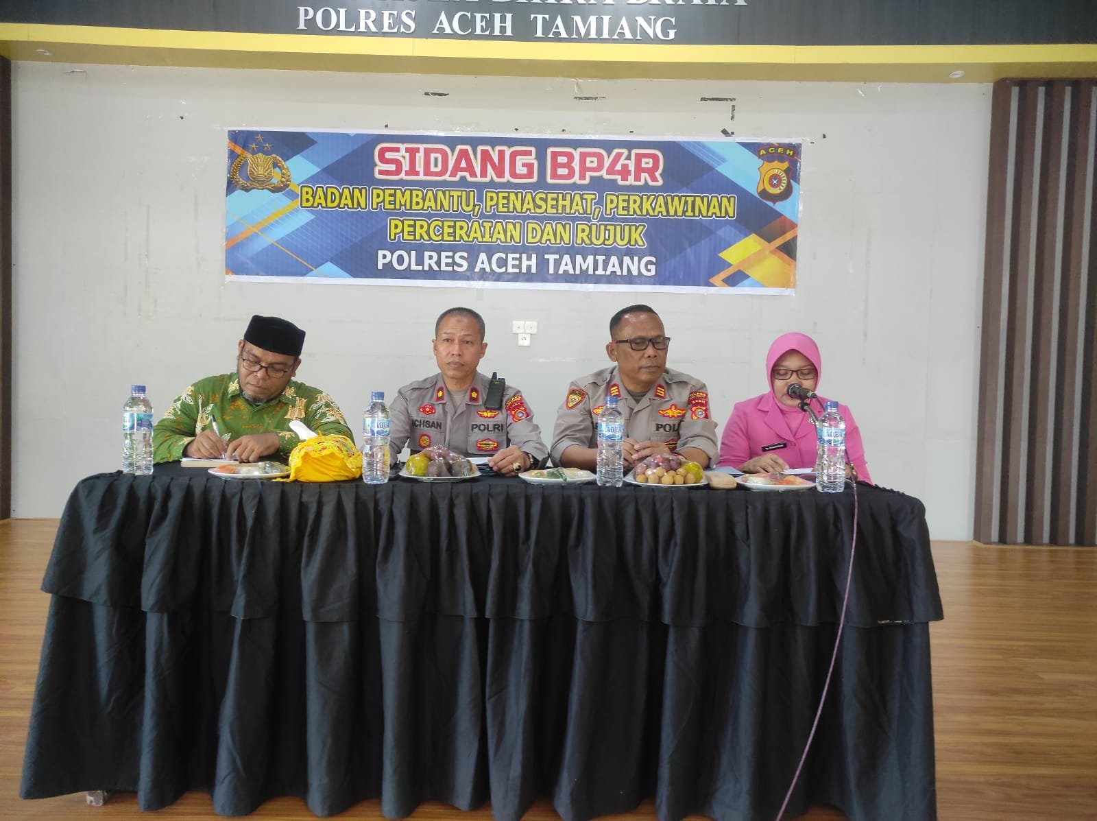 Wakapolres Aceh Tamianh KOMPOL Ichsan, S.H didampingi Kabag SDM AKP Simson Purba, S.H menjelaskan sidang BP4R adalah sidang untuk pemberian izin nikah bagi anggota Polri yang akan melaksanakan pernikahan.