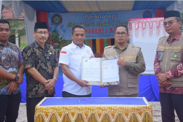 TODAYBERITA.COM| Aceh Tamiang – Mewakili Pj. Bupati Aceh Tamiang, Staf Ahli Bupati Bidang Pemerintahan Hukum dan Politik Drs. Maddiah menghadiri Acara Deklarasi Sekolah Bersinar (Bersih dari Narkoba) Kabupaten Aceh Tamiang yang berlangsung di SMA Negeri I Rantau, pada Kamis (21/0923).
