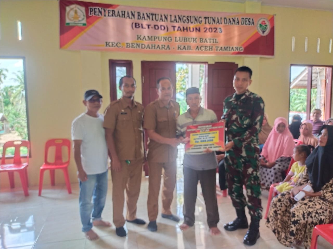 TODAYBERITA.COM – Aceh Tamiang | Bertempat di Kantor Desa Lubuk Batil Kecamatan Bendahara Kabupaten Aceh Tamiang telah dilaksanakan penyaluran Bantuan Langsung Tunai ( BLT ) Anggaran dana desa Tahun 2023 yang di pantau langsung oleh Bhabinkamtibmas, Senin (24/07/2023) pukul 14.00 wib