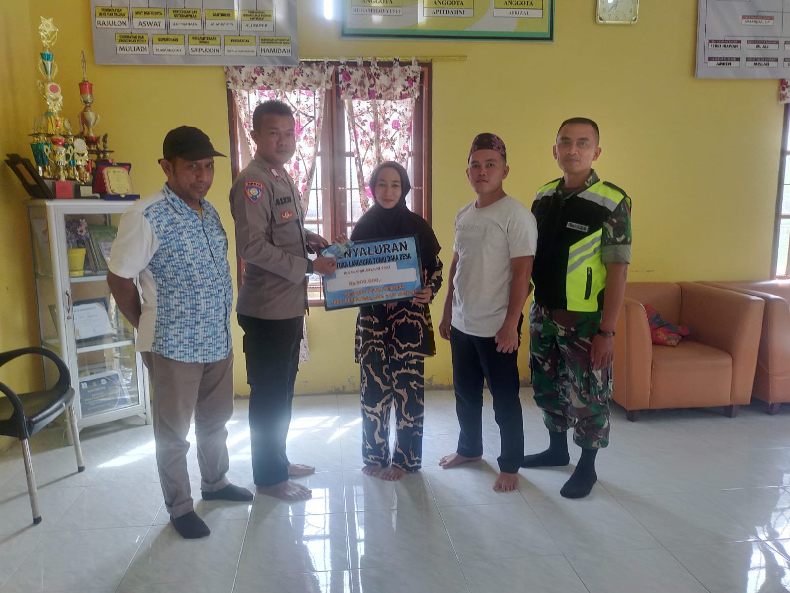 Bhabinkamtibmas Desa Teluk Kepayang, Babinsa Desa Teluk Kepayang, Datok Penghulu Desa Teluk Kepayang, Perangkat Desa Teluk Kepayang dan Para Penerima BLT-DD.