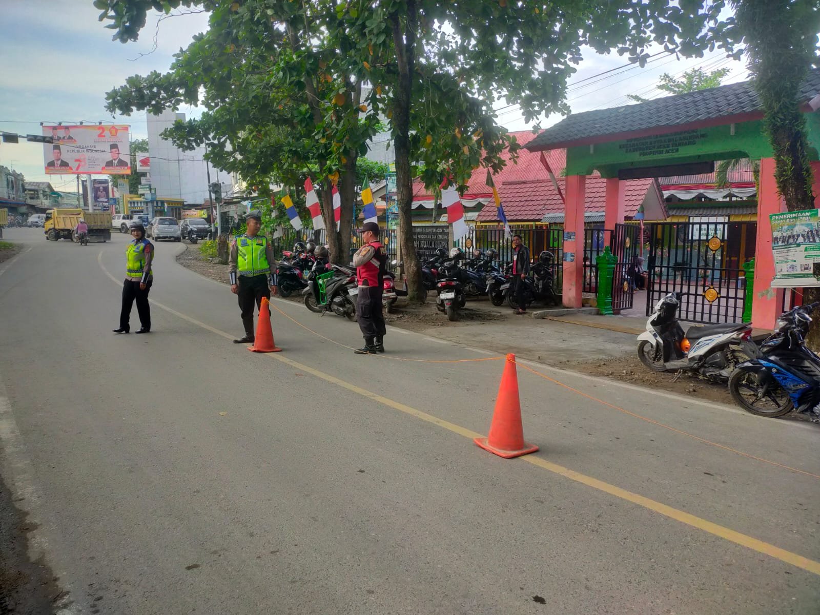 Kapolres Aceh Tamiang AKBP Muhammad Yanis, S.I.K melalui Kapolsek Kuala Simpang Iptu Amril Bakhri SH menjelaskan bahwa pengaturan dan penjagaan arus lalu lintas di Strong point yang dilakukan oleh Personel Polsek Kuala Simpang untuk mengantisipasi kelancaran arus lalu lintas mengingat Pagi hari banyak masyarakat yang berlalu lalang.